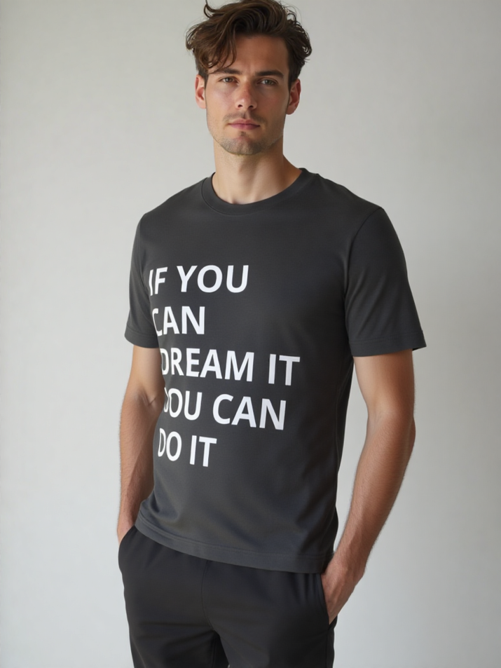 The GenZudio If You Can Dream It You Can Do It T-shirt delivers a clean, bold motivational message in a minimalist design. Crafted from premium soft cotton, this charcoal grey tee is perfect for everyday wear, workouts, and street-style outfits. Lightweight, breathable, and confidence-boosting — this is motivation you can wear.